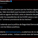 Samper elogió a Oviedo y afirmó en un mensaje en su cuenta X que su postura fue «valiente y muy honesta».